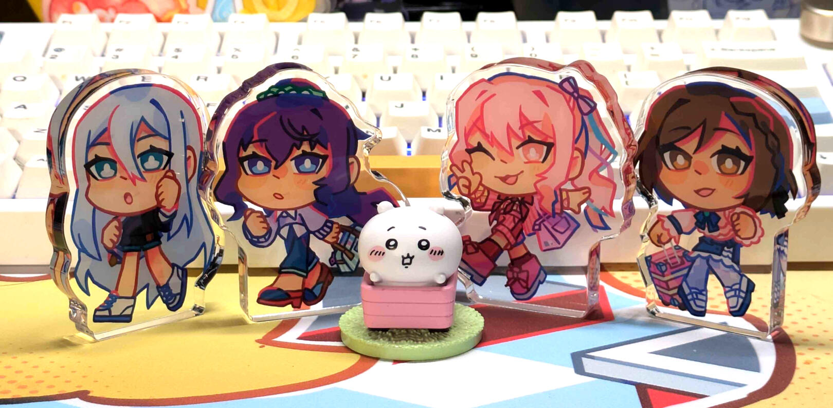 Lover of bright colors!!! I make art merch (charms, prints, stickers, & live commissions) to sell in Artist Alleys across the North-East US & sometimes UK.I cover fanart for a variety of games, animes, movies, & vtubers; but also have some original pieces. Mostly a fan of rhythm gacha games & older anime/games!