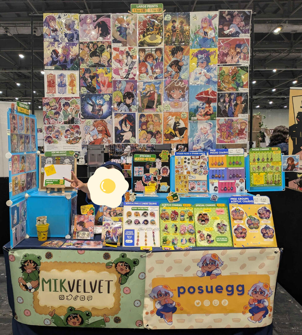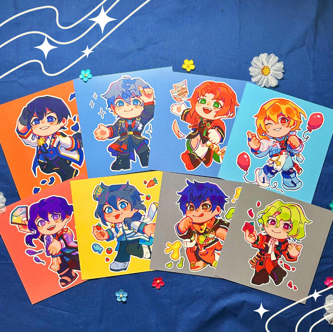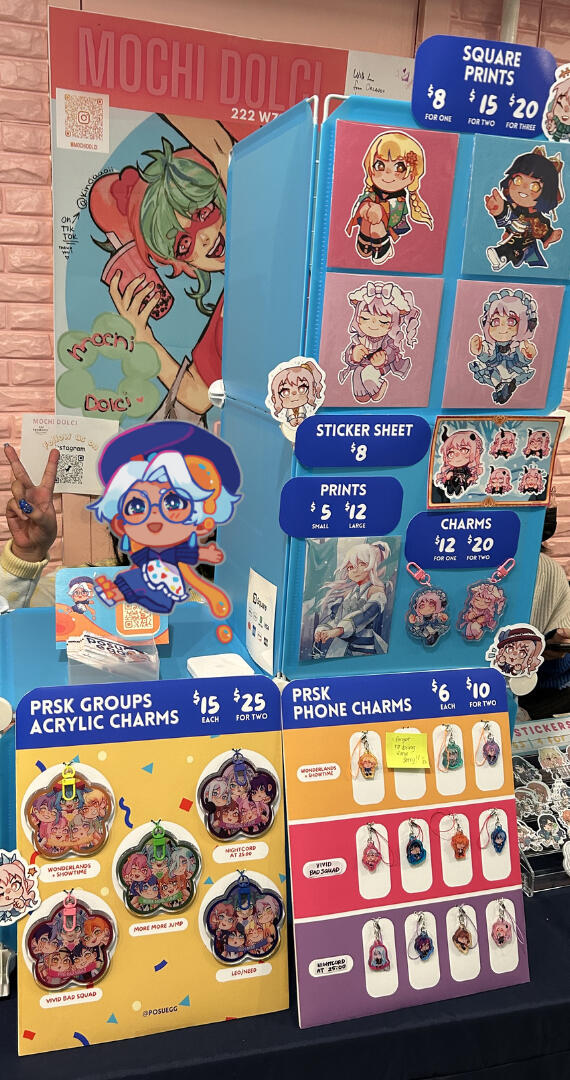 Lover of bright colors!!! I make art merch (charms, prints, stickers, & live commissions) to sell in Artist Alleys across the North-East US & sometimes UK.I cover fanart for a variety of games, animes, movies, & vtubers; but also have some original pieces. Mostly a fan of rhythm gacha games & older anime/games!