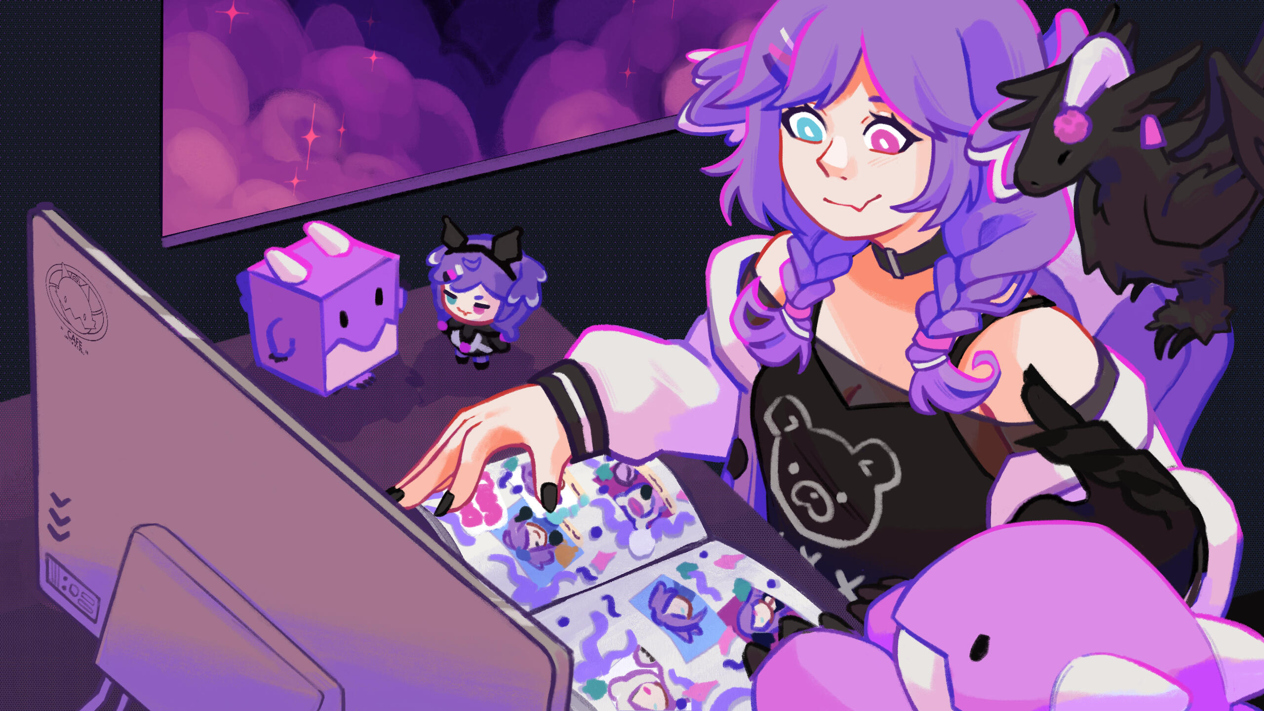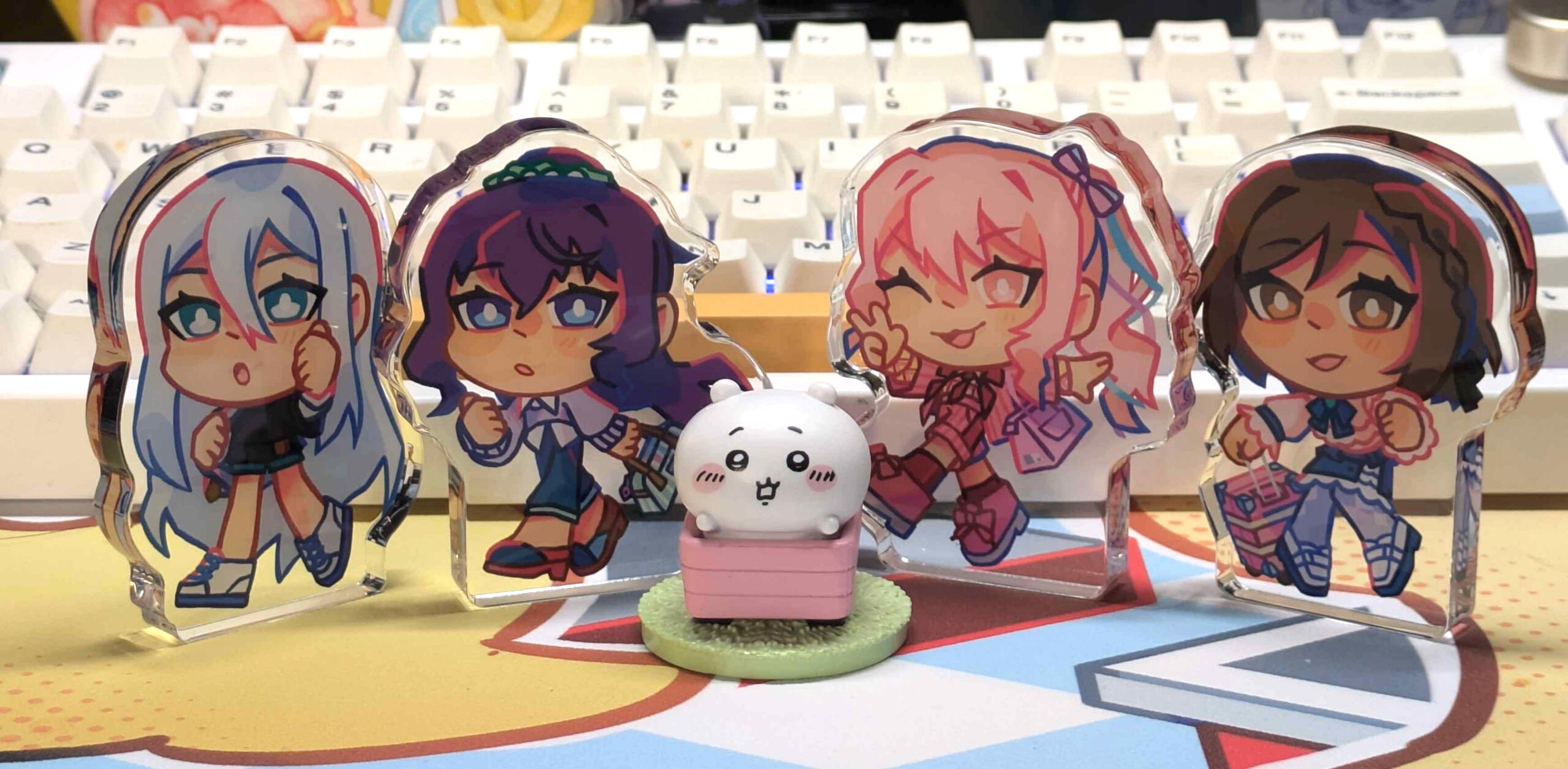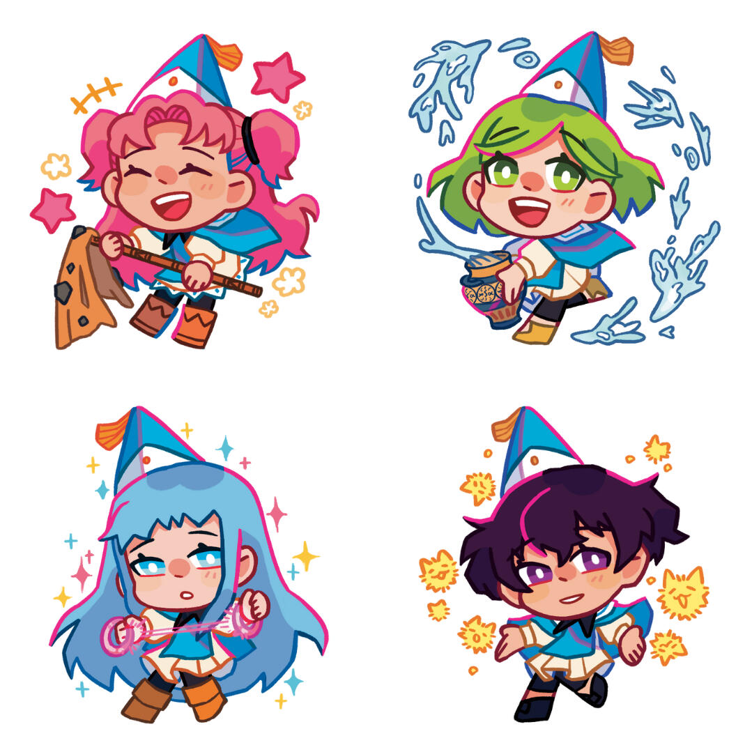 Lover of bright colors!!! I make art merch (charms, prints, stickers, & live commissions) to sell in Artist Alleys across the North-East US & sometimes UK.I cover fanart for a variety of games, animes, movies, & vtubers; but also have some original pieces. Mostly a fan of rhythm gacha games & older anime/games!